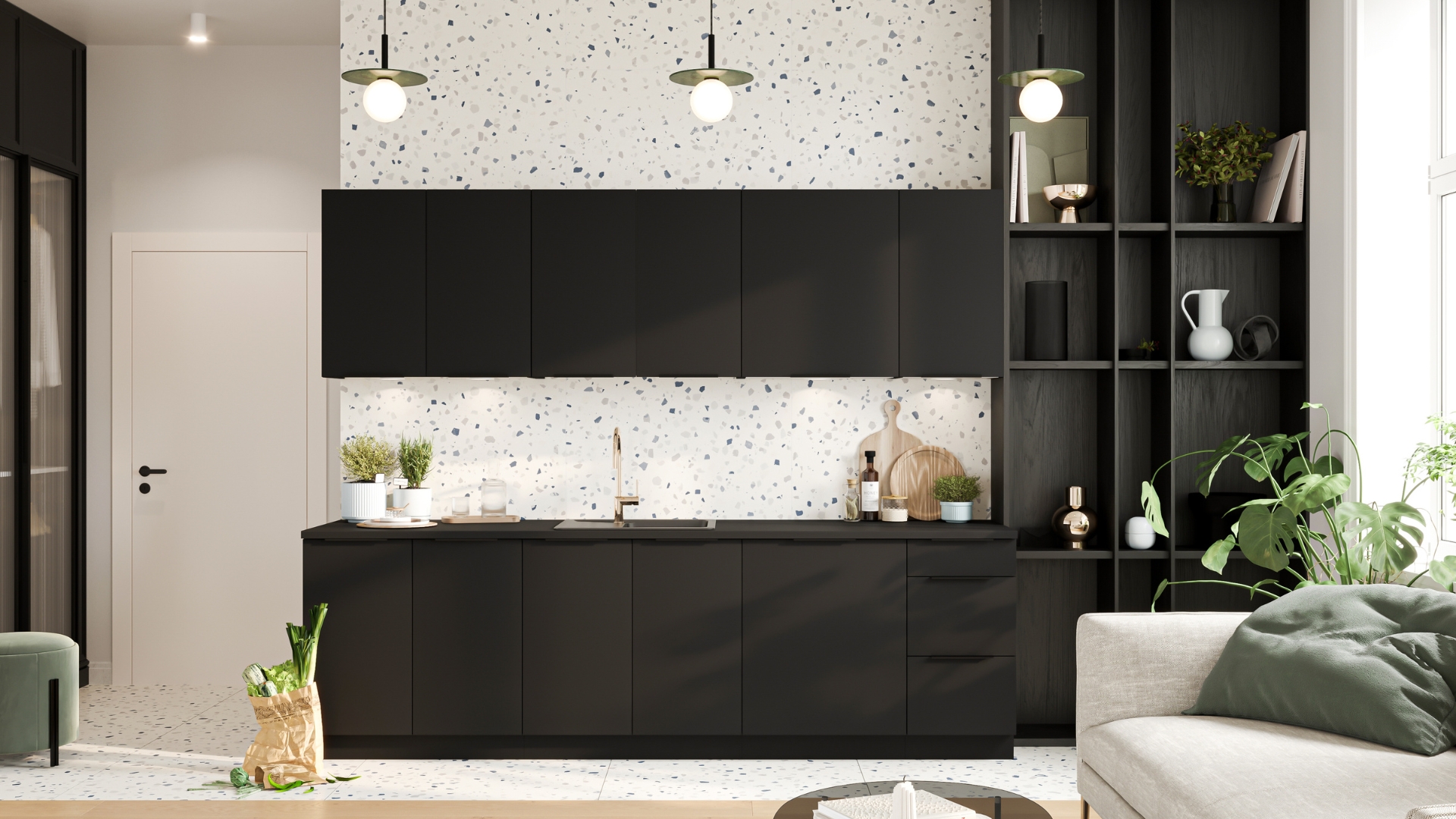 Meble kuchenne z kolekcji Mina to kwintesencja elegancji i nowoczesnego designu. Ich czarne fronty emanują szykownością i unikalnym urokiem. Matowa powierzchnia, ozdobiona delikatną strukturą drobnego groszku, przyciąga uwagę i nadaje pomieszczeniu niezwykłego charakteru.